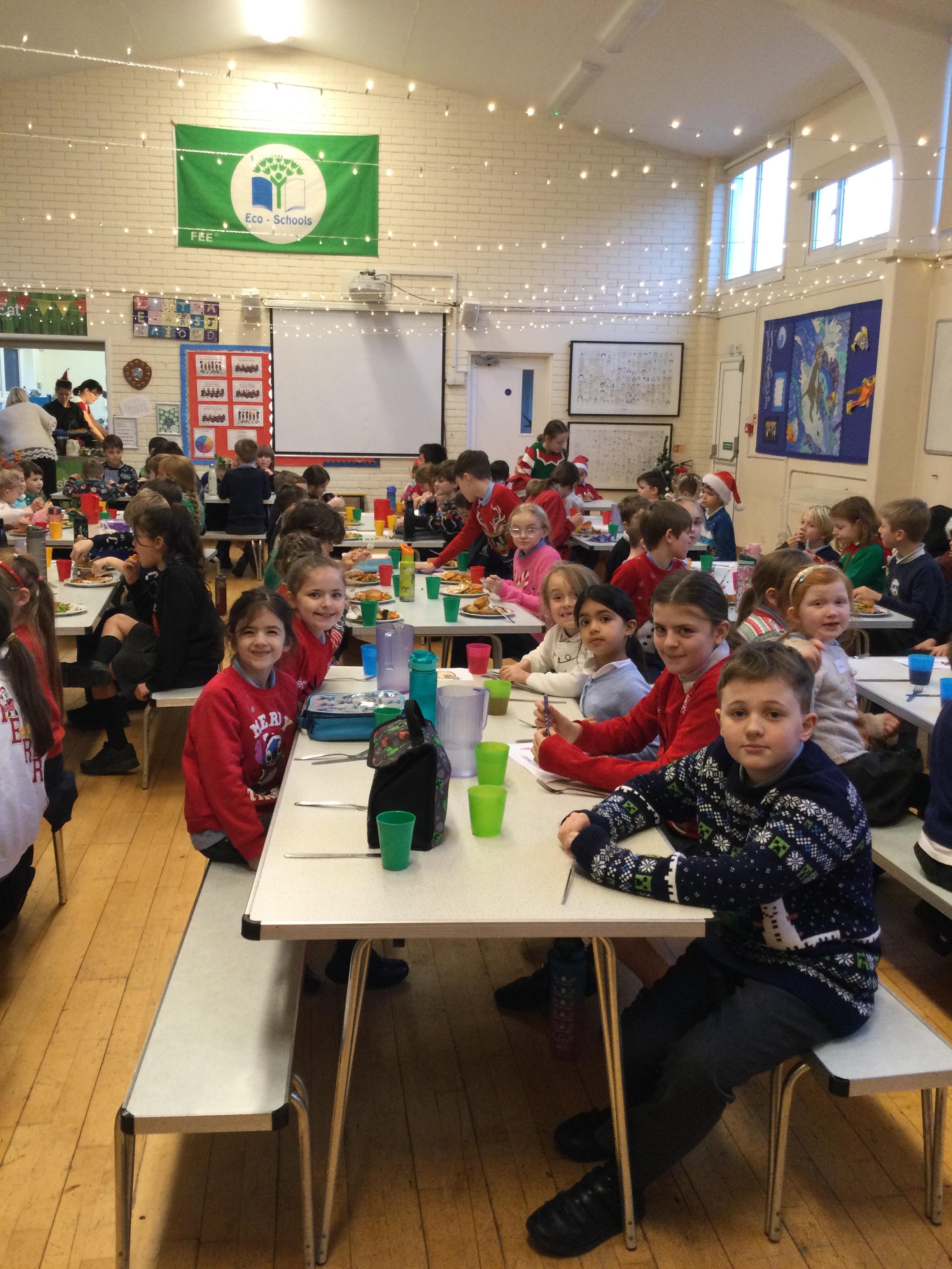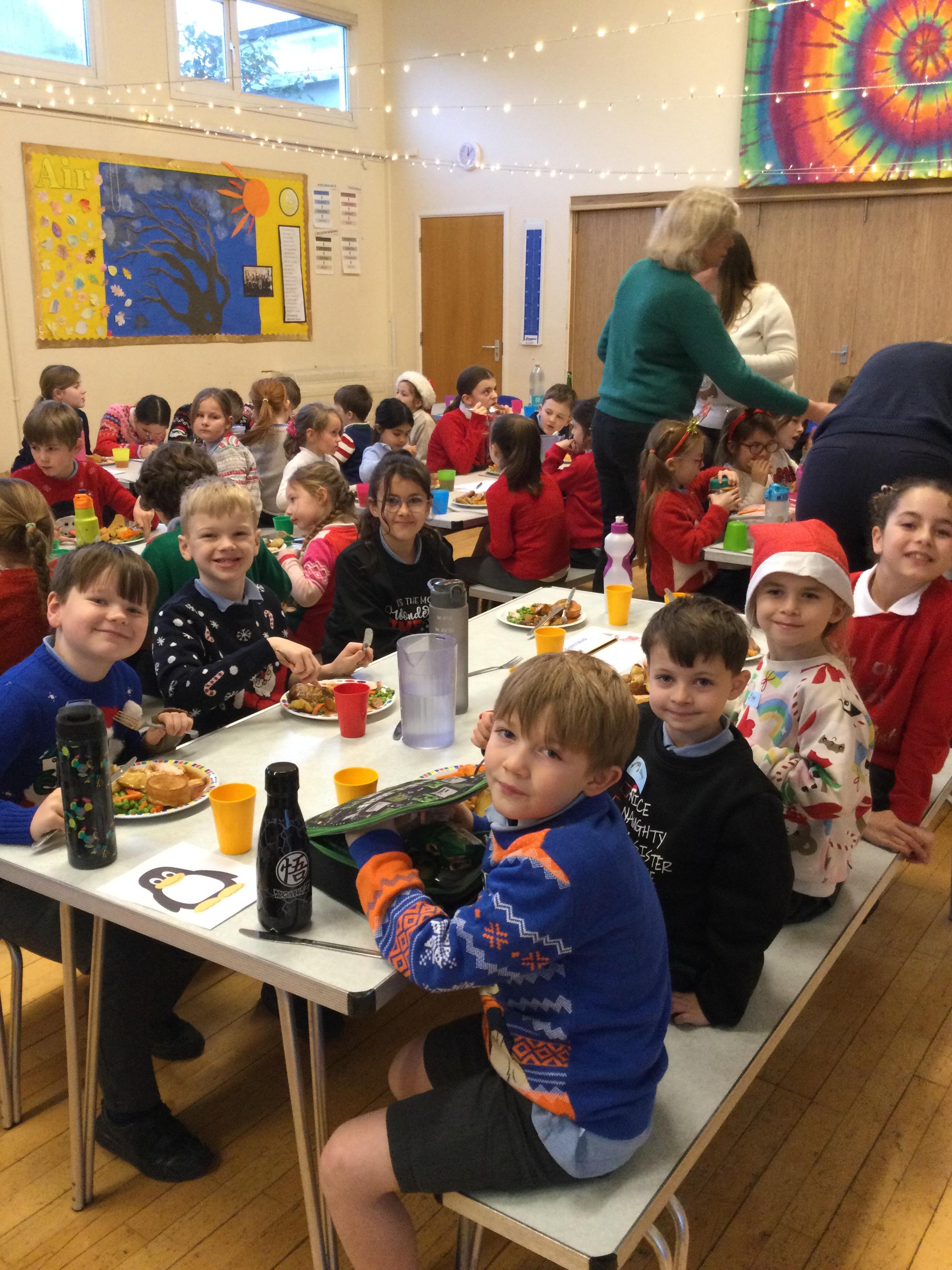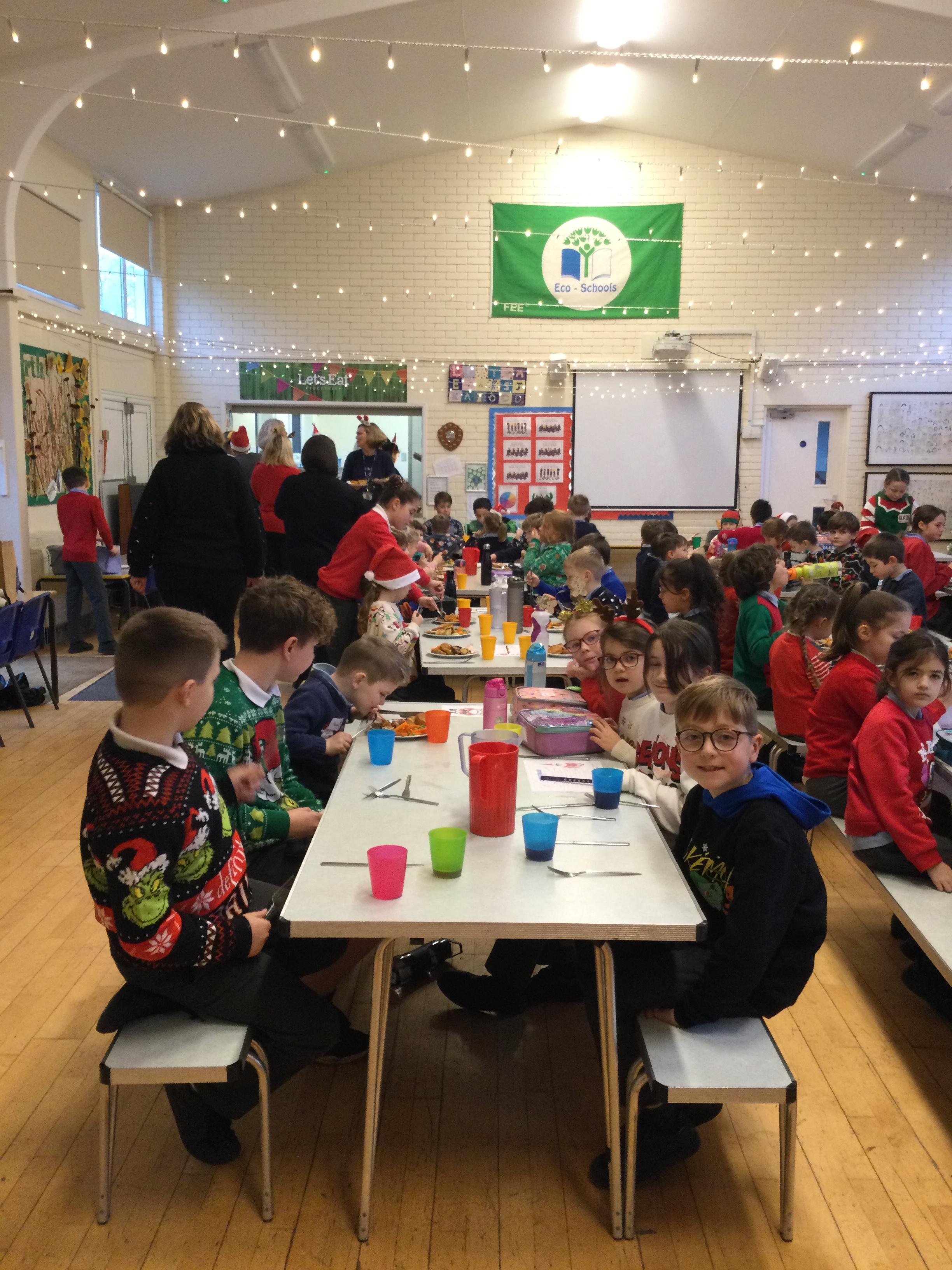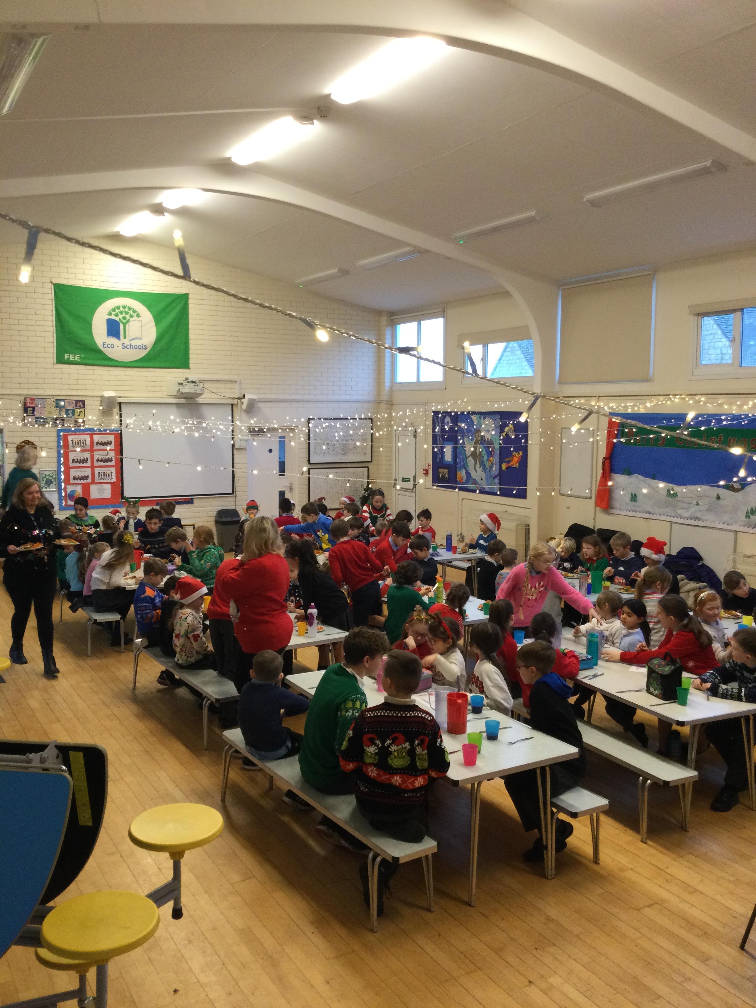 Every year on this special occasion the teachers take on the role of waiters and waitresses and serve lunch to the children. We all wear our Christmas jumpers and raise money for "Save the Children".