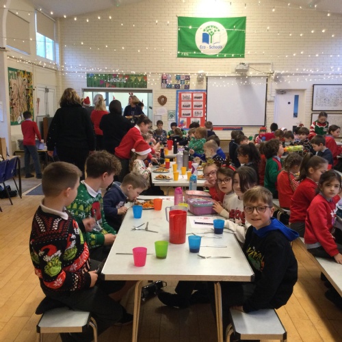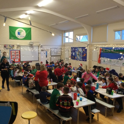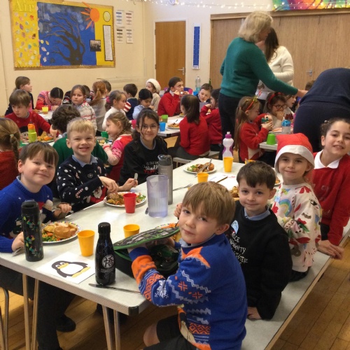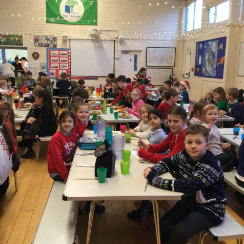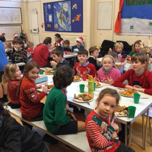 The whole school enjoying Christmas lunch