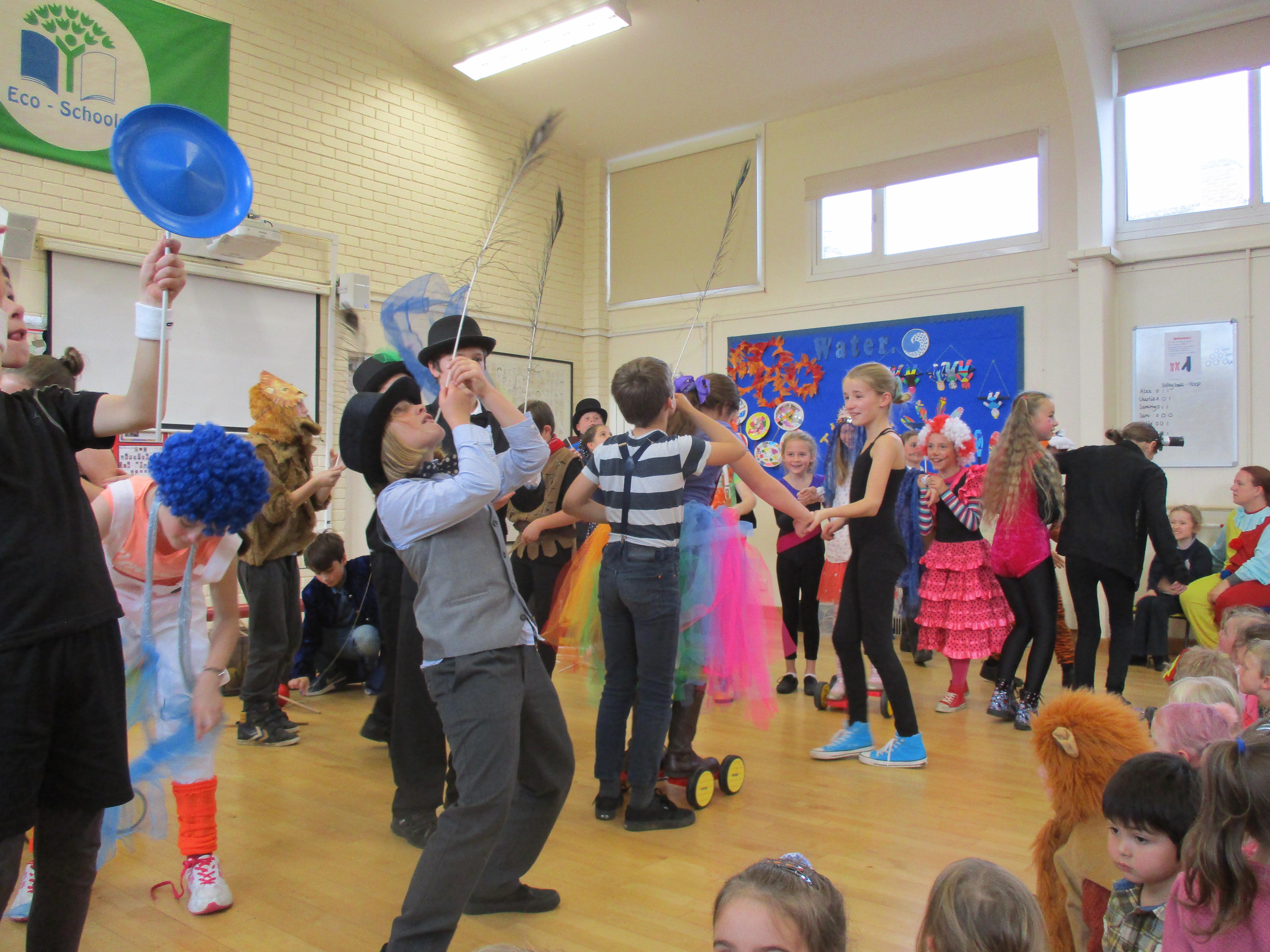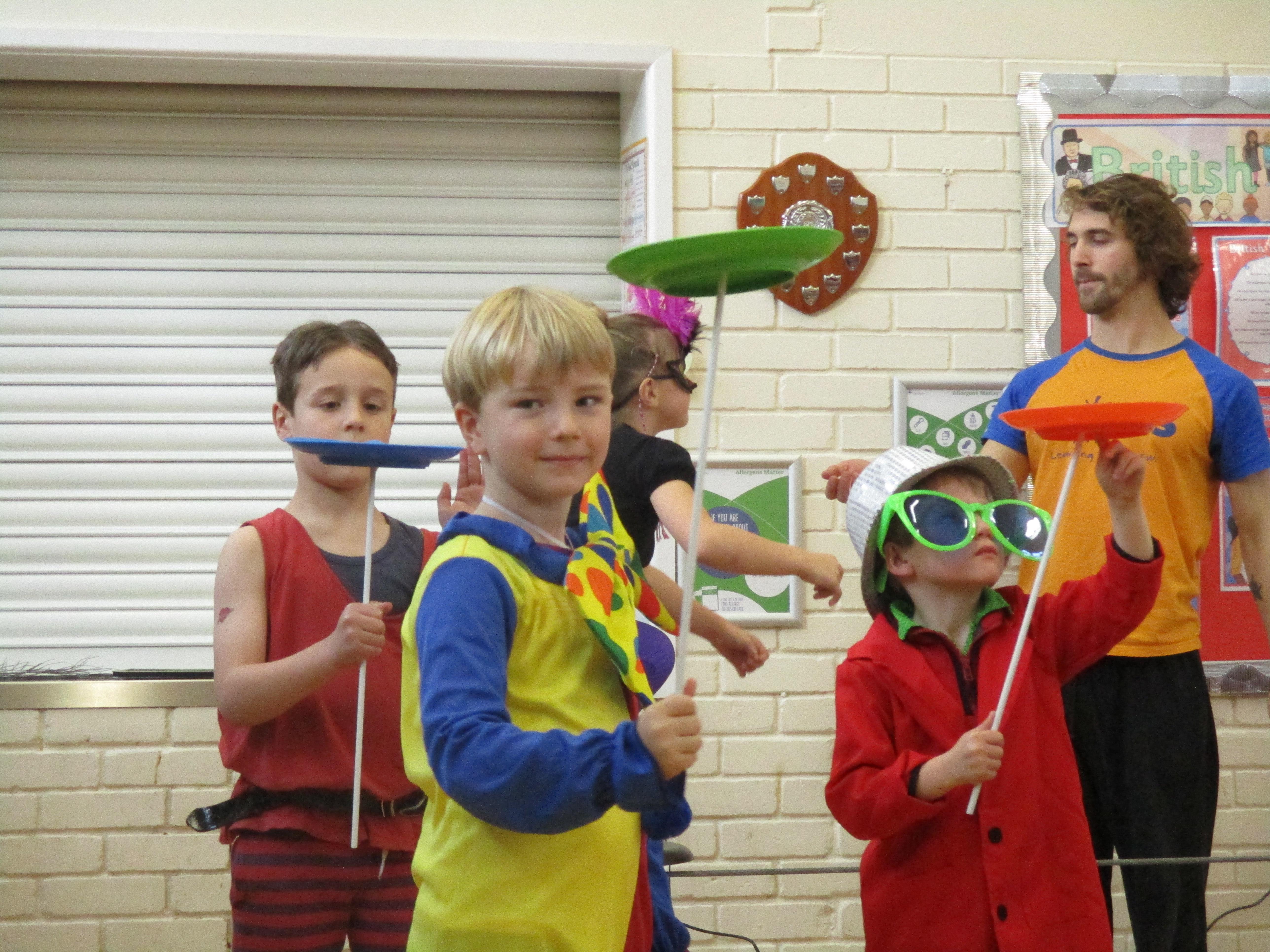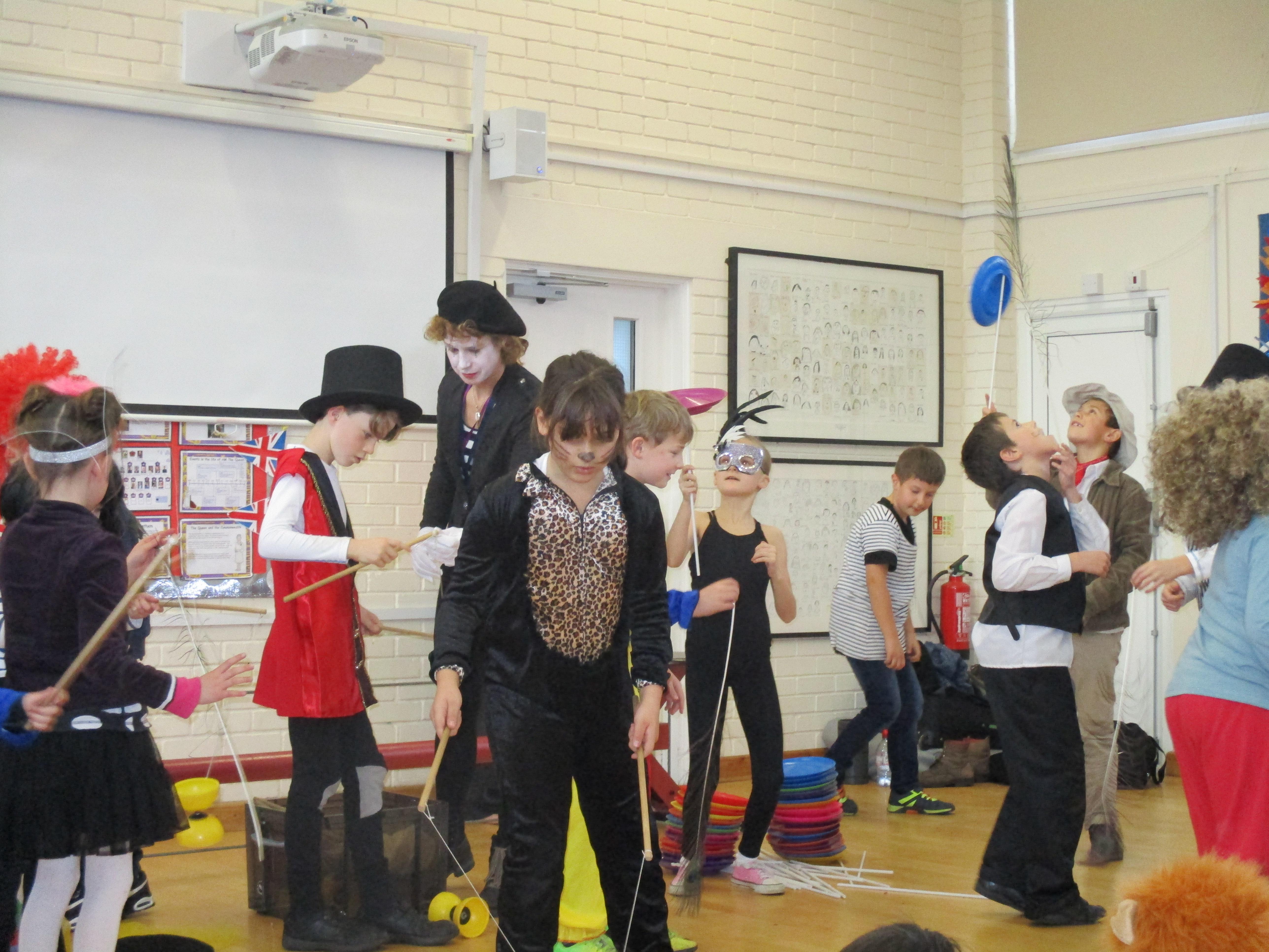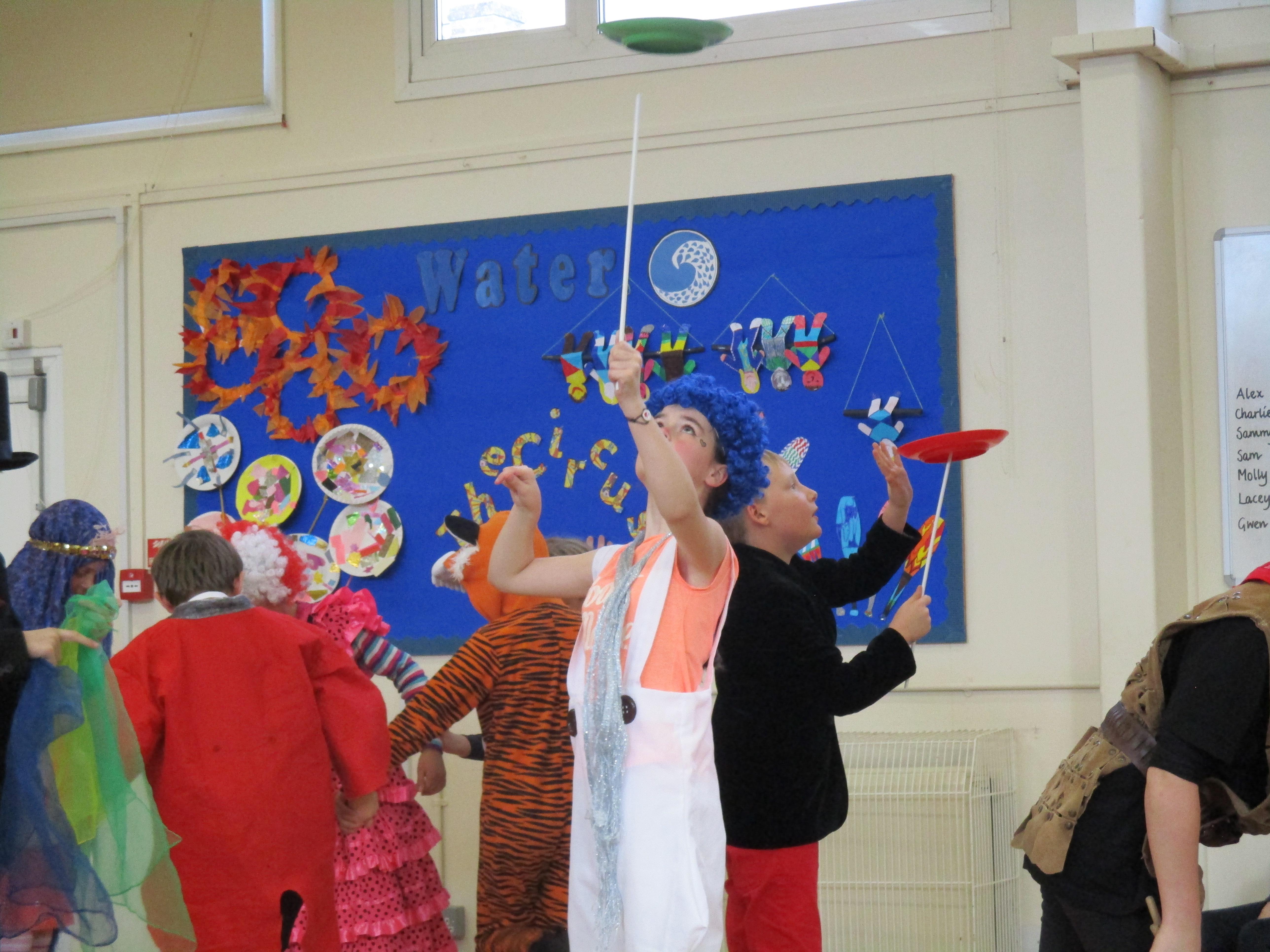 We began Circus Week with a circus skills workshop which invloved plate spinning, juggling bean bags and scarves and balancing beanbags and peacock feathers. A great time was had by all! Each class took part in a variety of circus themed activities which included designing posters, reading and writing circus stories, debating whether or not animals should perform in the circus, creating spreadsheets to work out the cost of a refreshments stall, drawing images of circus performers and circus themed science investigations. Our week finished with a Big Top performance where we dressed up as circus performers and treated our friends and family to some circus entertainment!