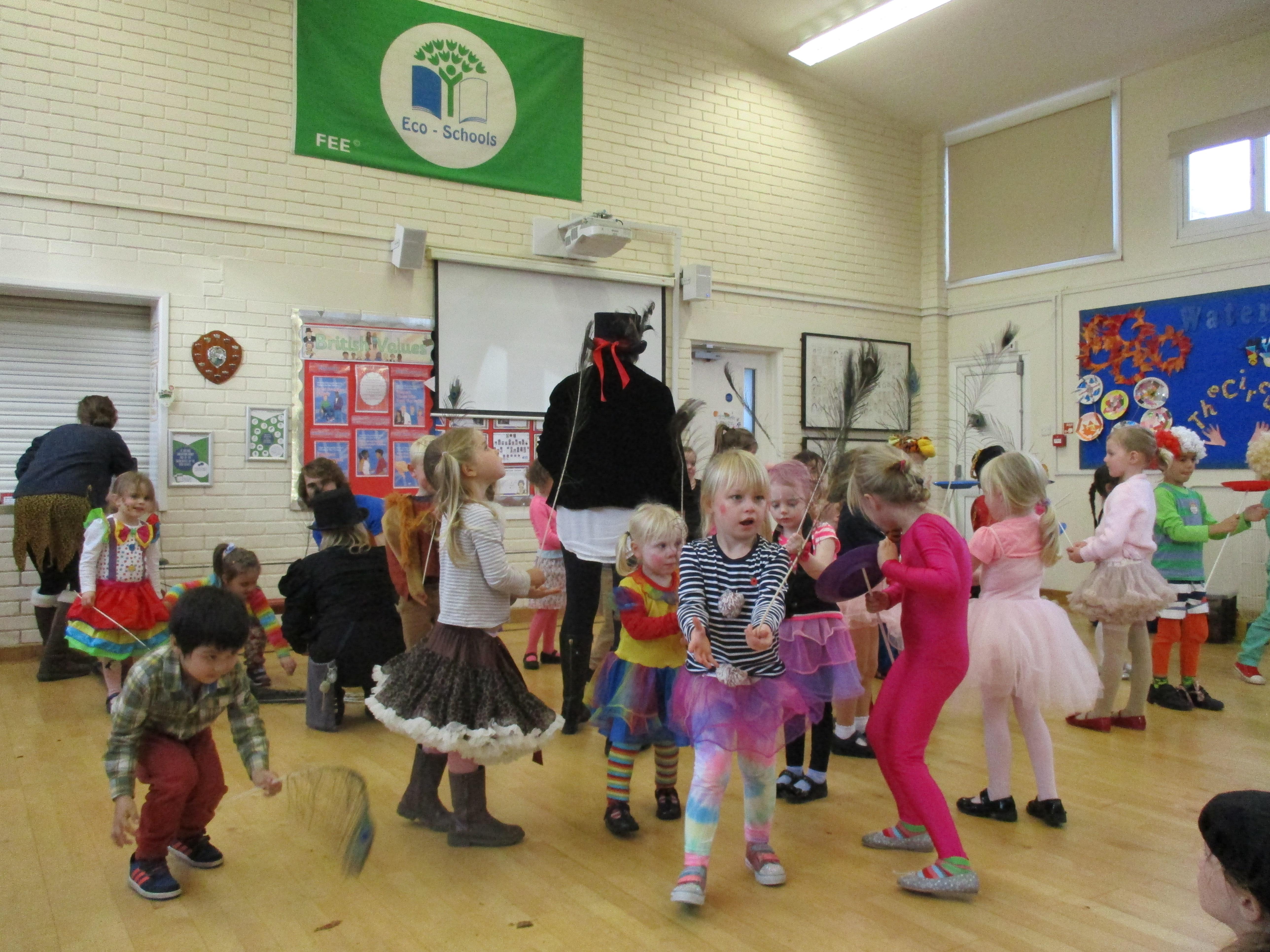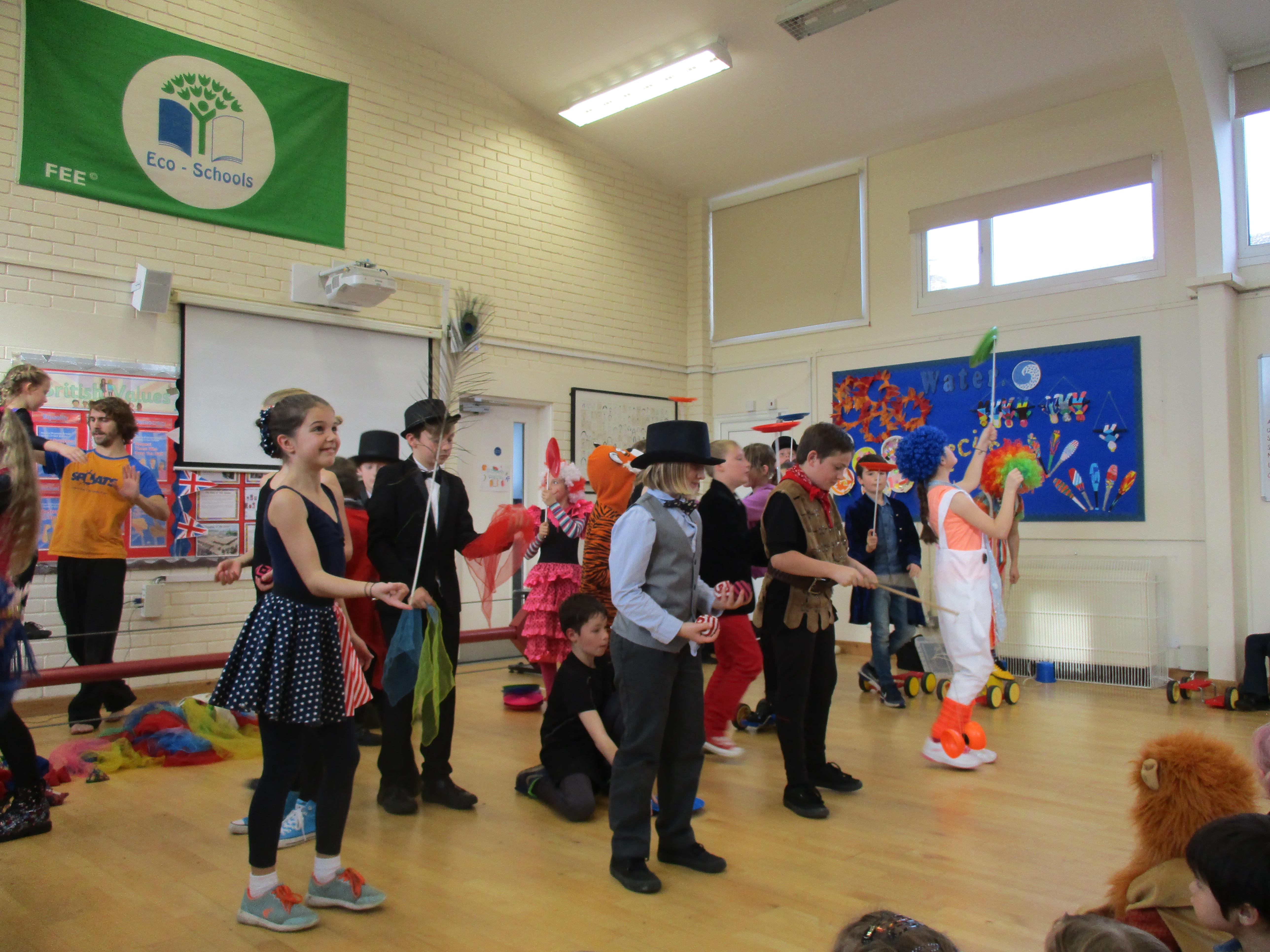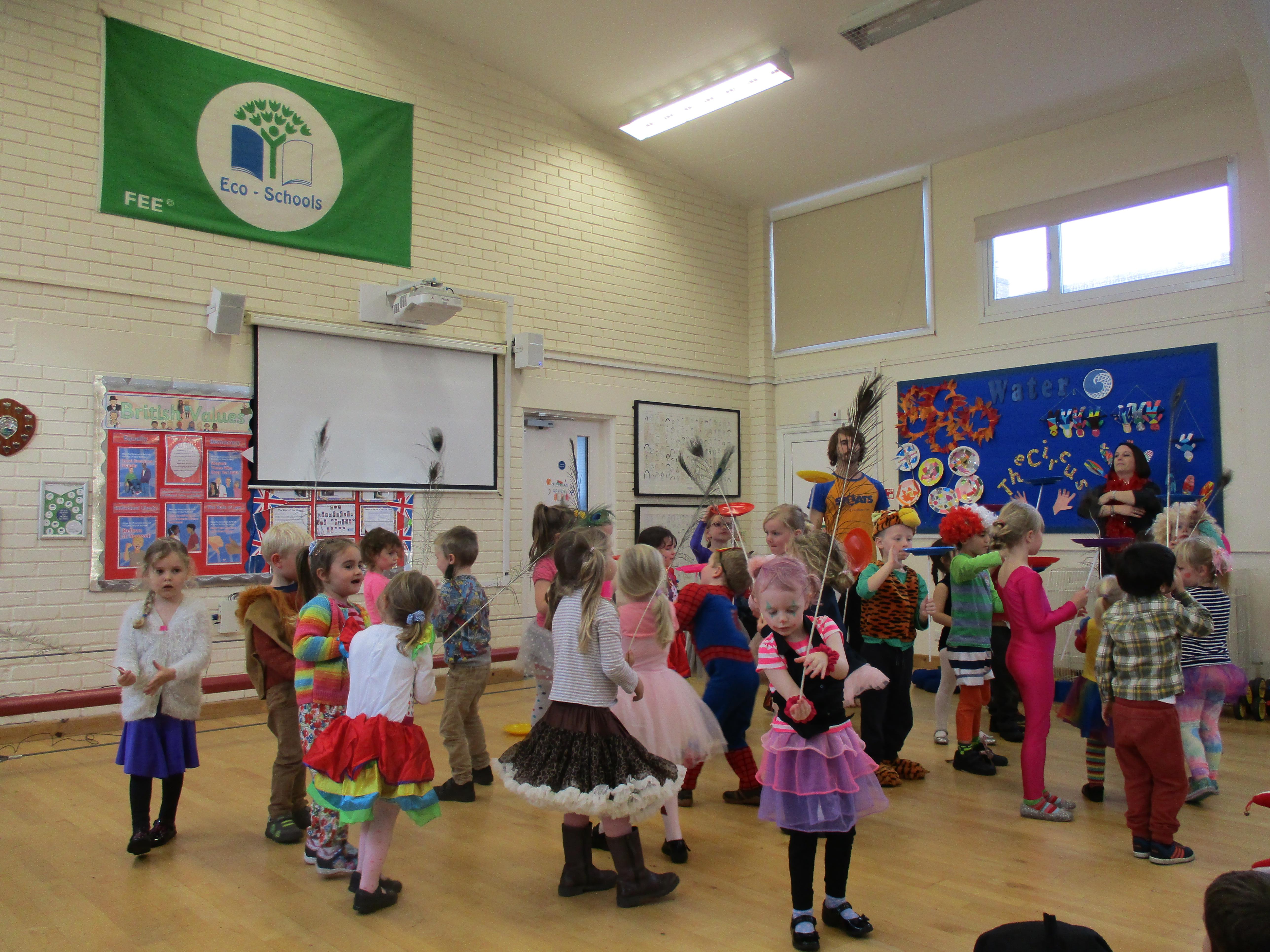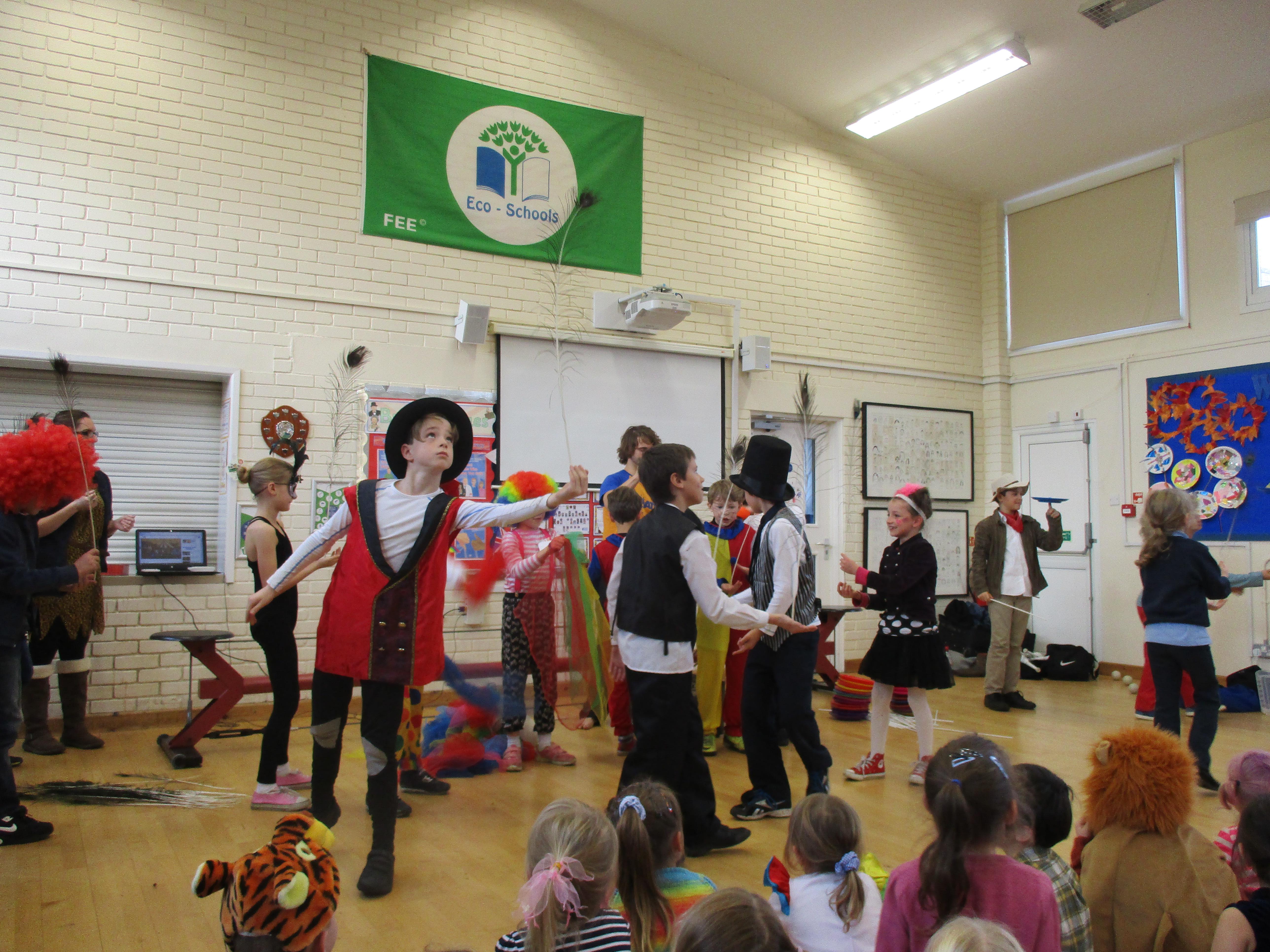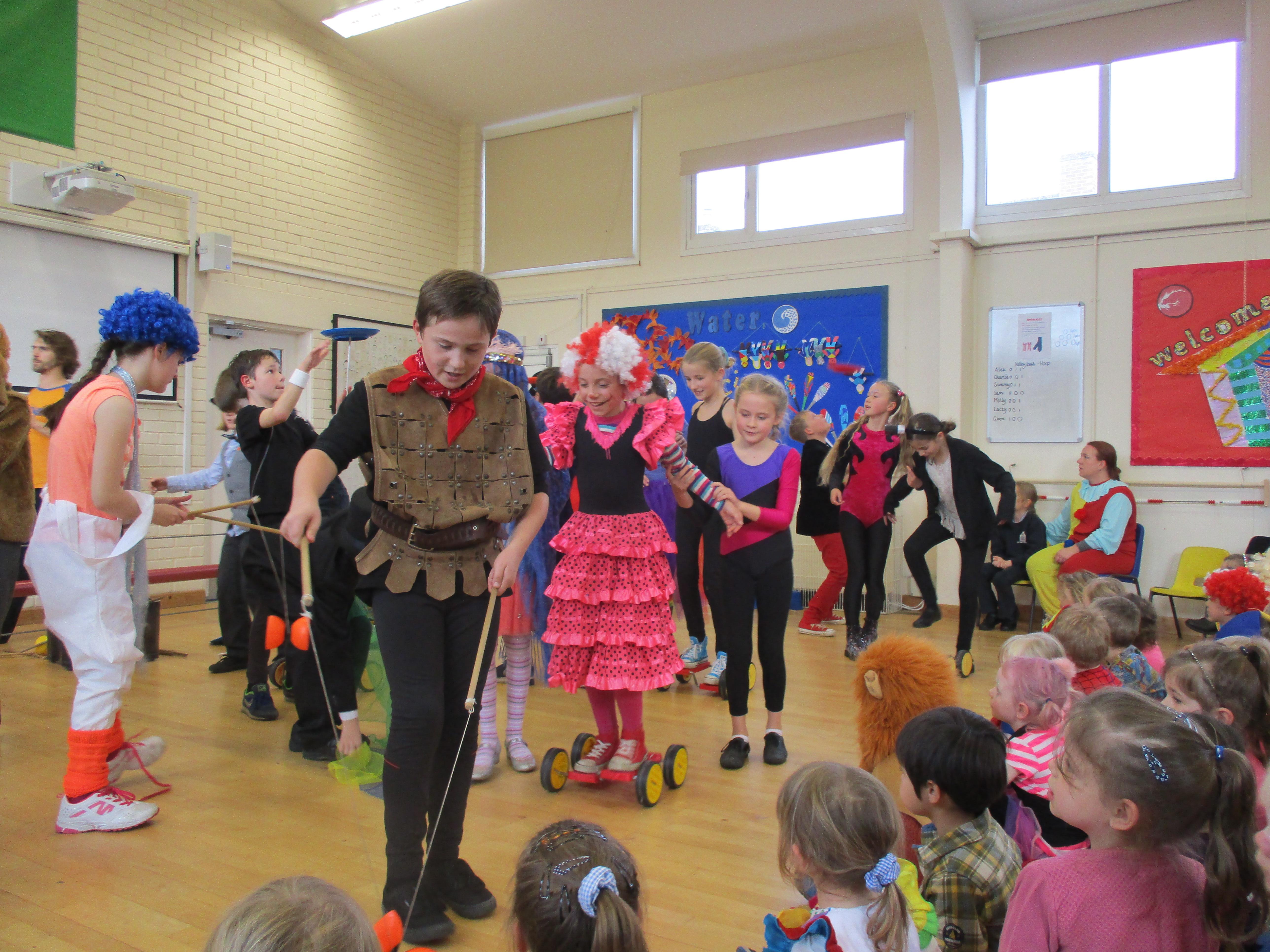 We began Circus Week with a circus skills workshop which invloved plate spinning, juggling bean bags and scarves and balancing beanbags and peacock feathers. A great time was had by all! Each class took part in a variety of circus themed activities which included designing posters, reading and writing circus stories, debating whether or not animals should perform in the circus, creating spreadsheets to work out the cost of a refreshments stall, drawing images of circus performers and circus themed science investigations. Our week finished with a Big Top performance where we dressed up as circus performers and treated our friends and family to some circus entertainment!