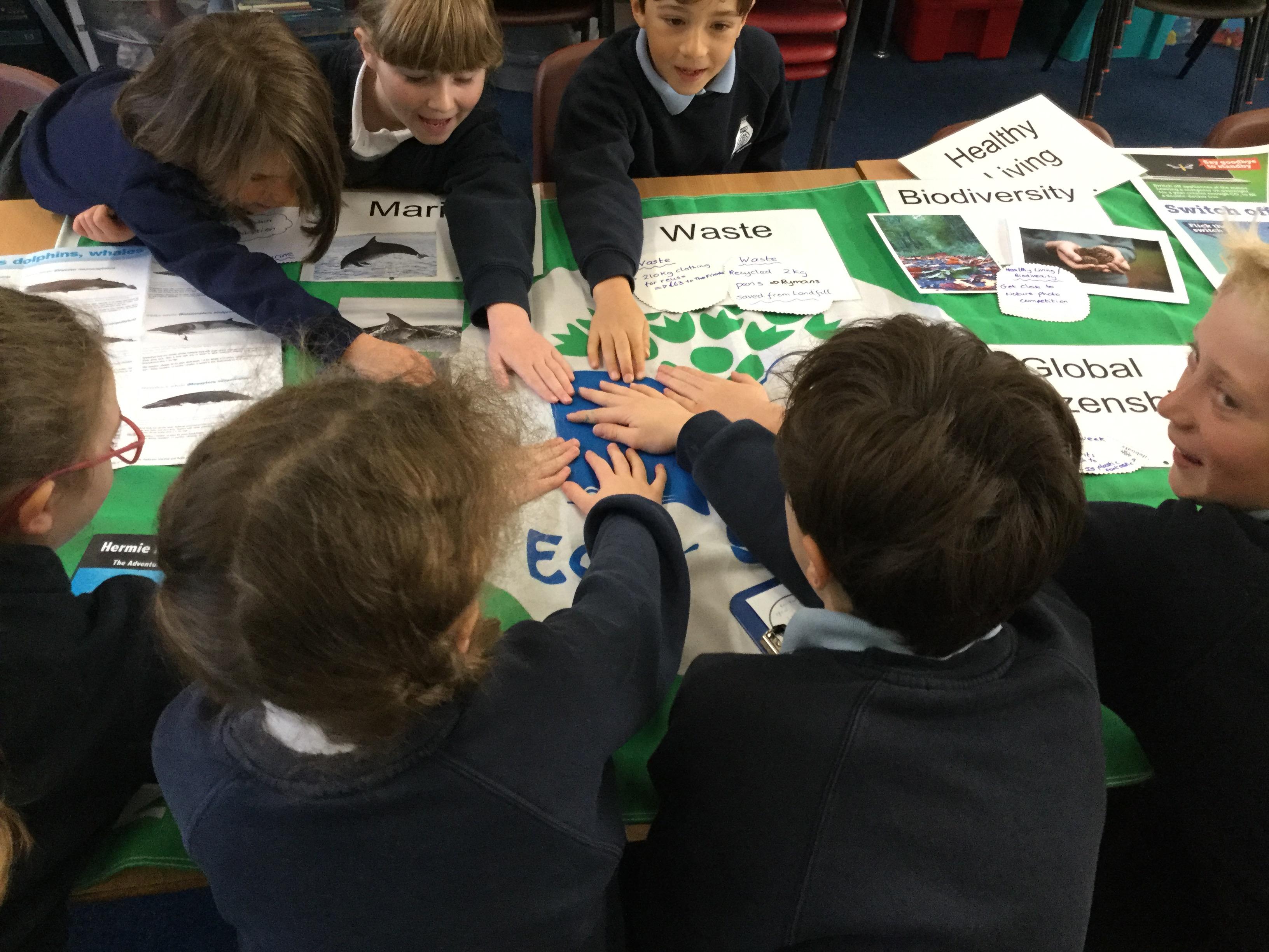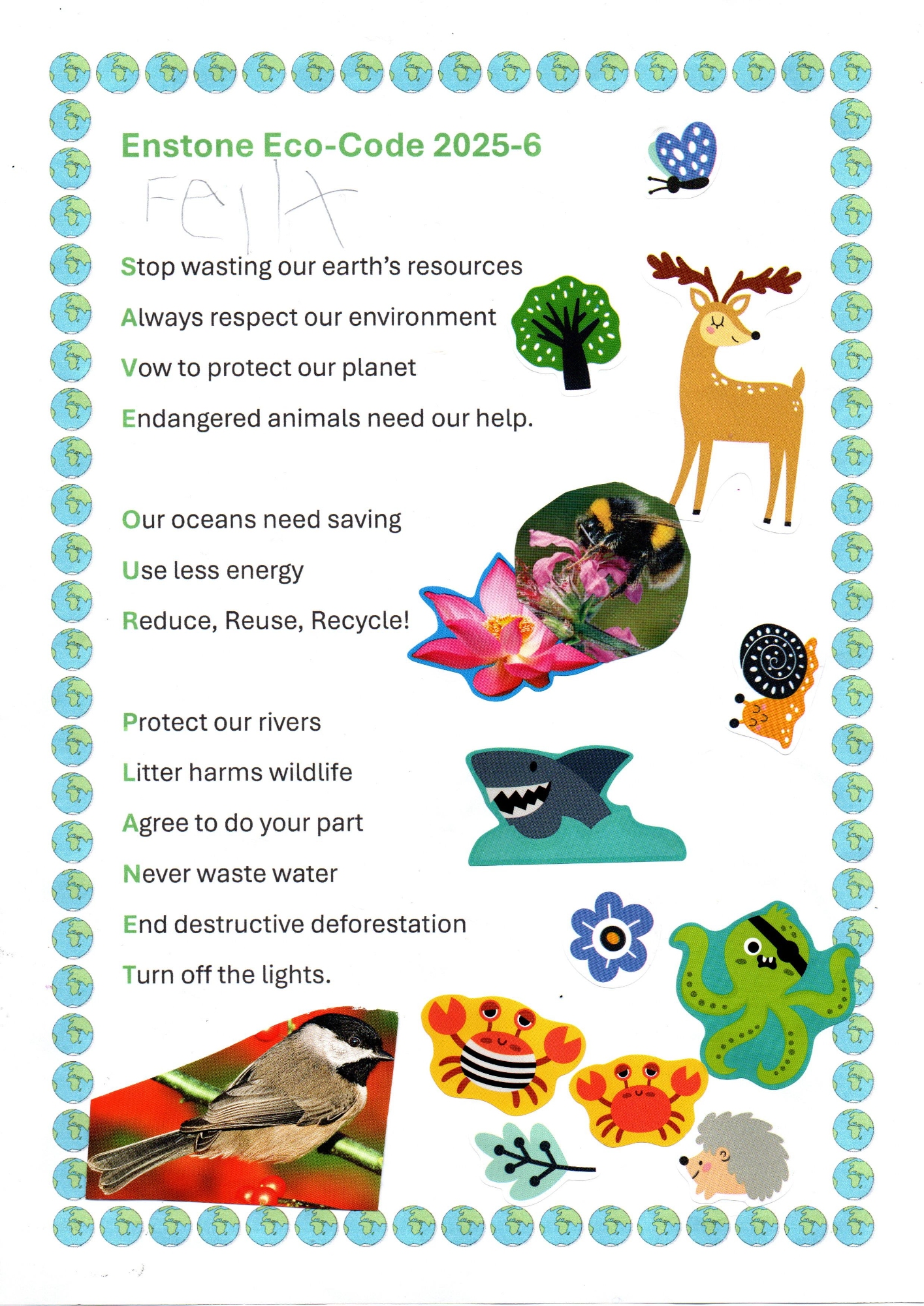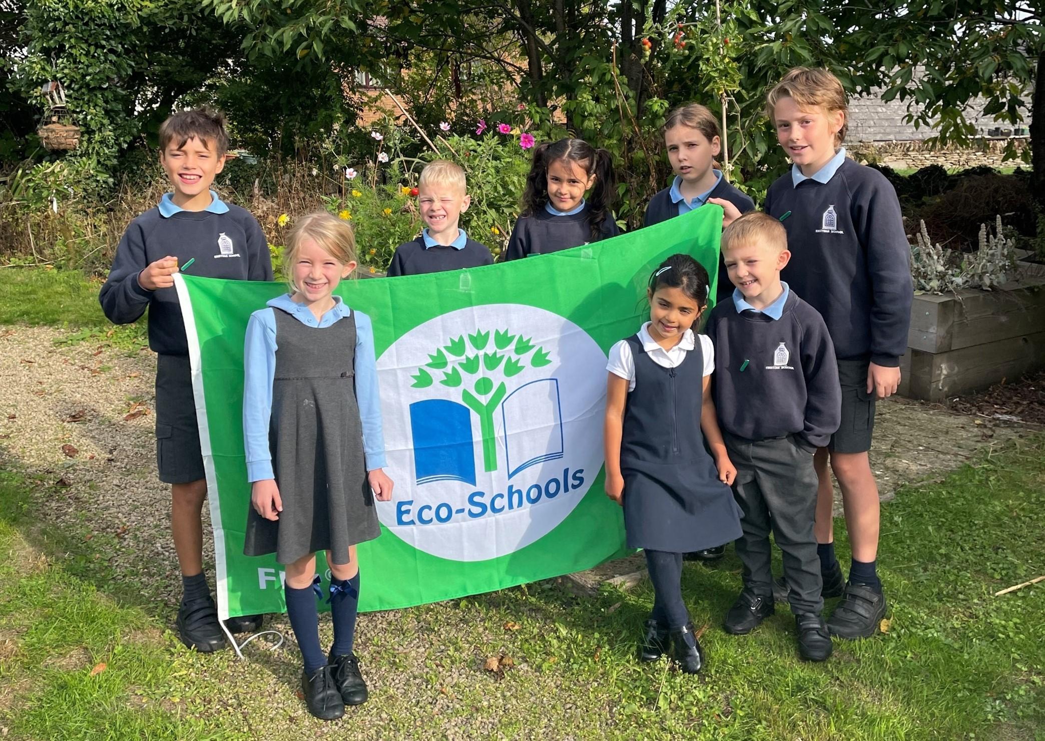 Since September 2008 a student council of "Eco Warriors", with a dedicated staff member at the helm, have led Enstone Primary School first in achieving and then in maintaining Eco-School status.  The award was first achieved in January 2011 with the Green Flag being presented to the Eco Warriors by Cllr. Ian Hudspeth.  In the years that followed we faced bi-annual and then annual re-assessment, which we passed with flying colours each time, retaining our Green Flag status.  In 2022, 2023, 2024 and 2025 we were delighted to achieve awards with Distinction!