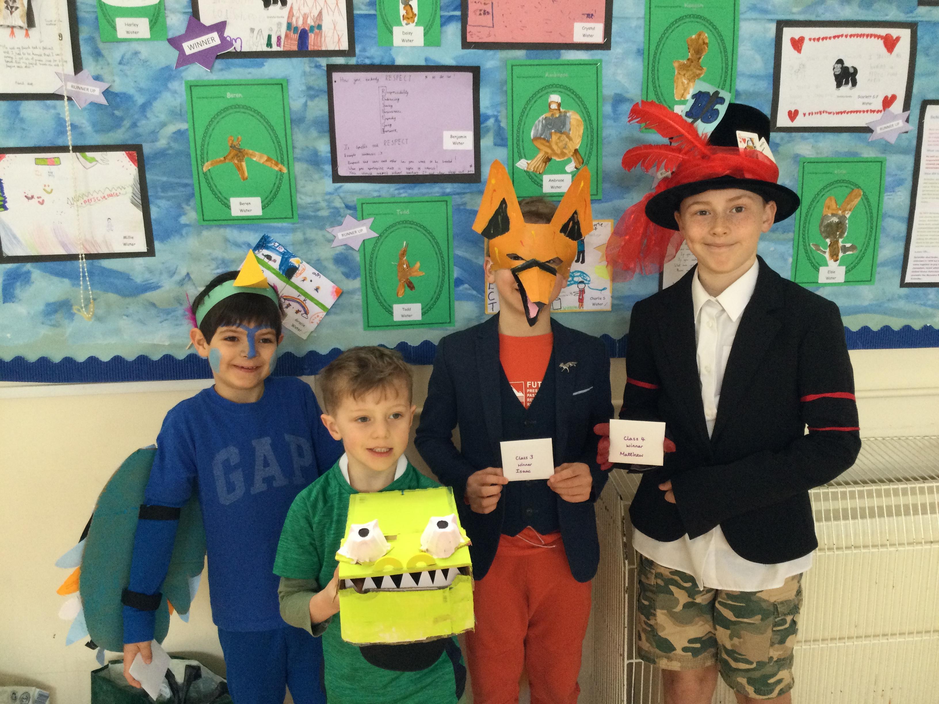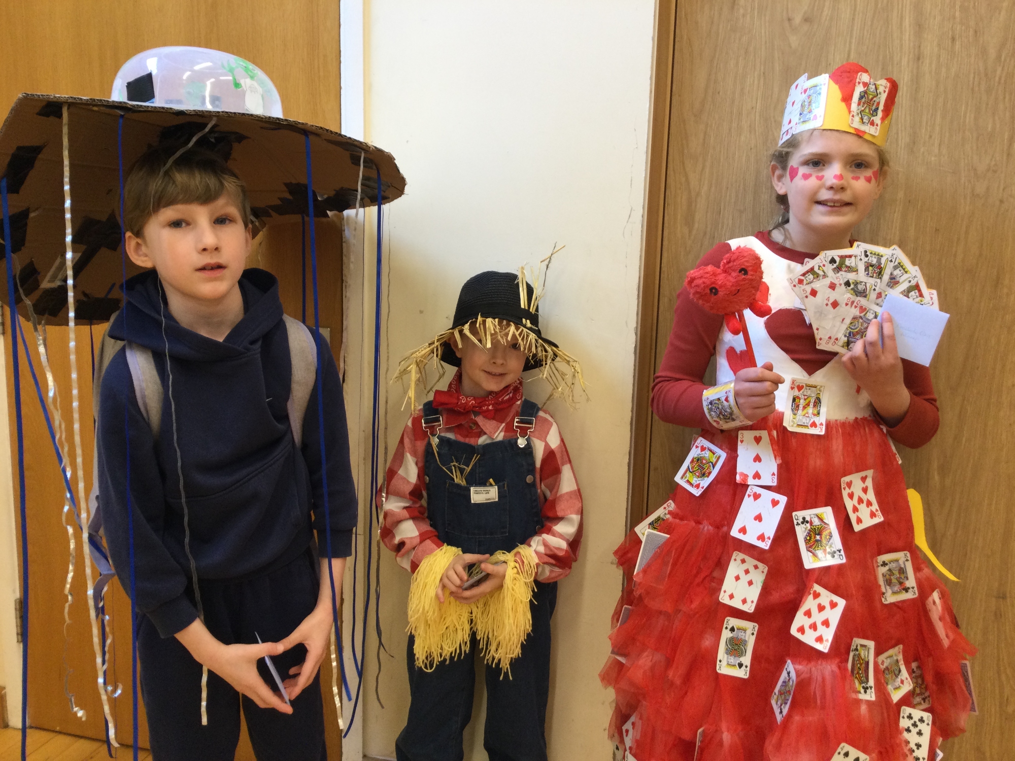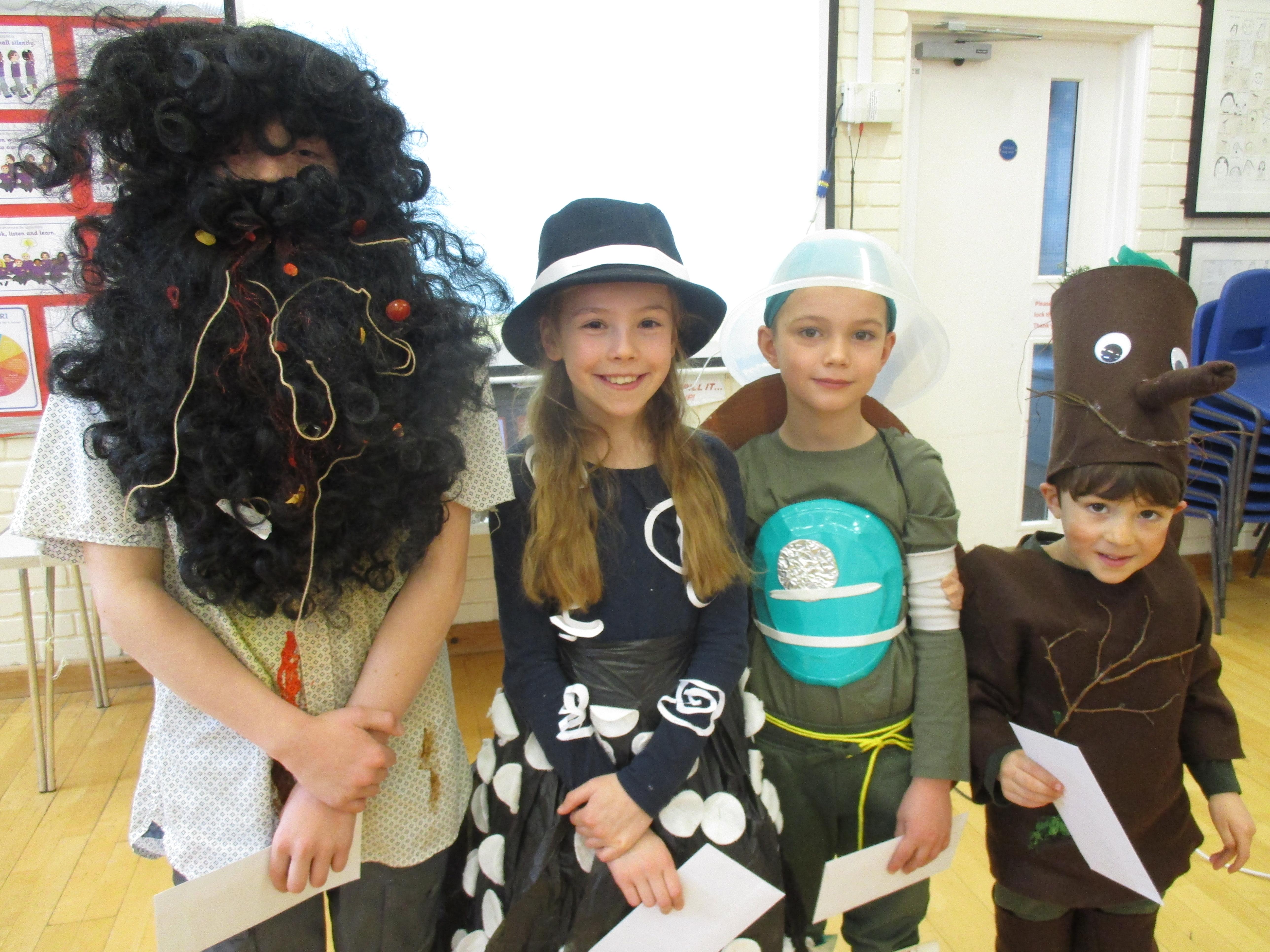 This year, 2026, we celebrated the oral story-telling tradition by creating and sharing our own stories using props, puppets and our imaginations! We enjoyed recording our story-telling on the iPads, to be shared with other classes in the school. We always dress for the occasion – pictured below are some of our wacky costumes from World Book Days both recent and historic.