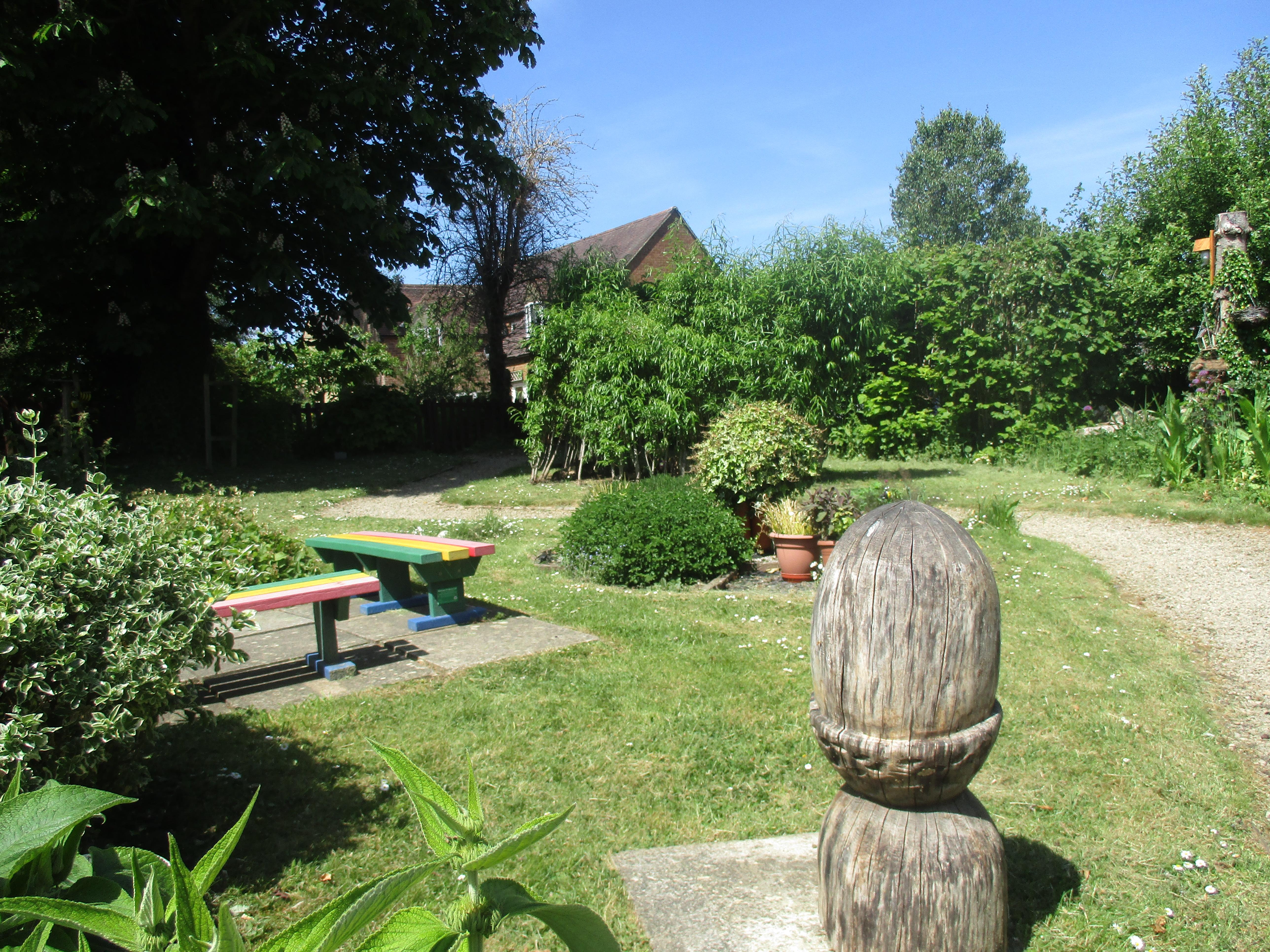 The school garden includes a quiet area, vegetable garden and pond area. The biodiversity has been improved with the inclusion of bug hotels and wood piles.